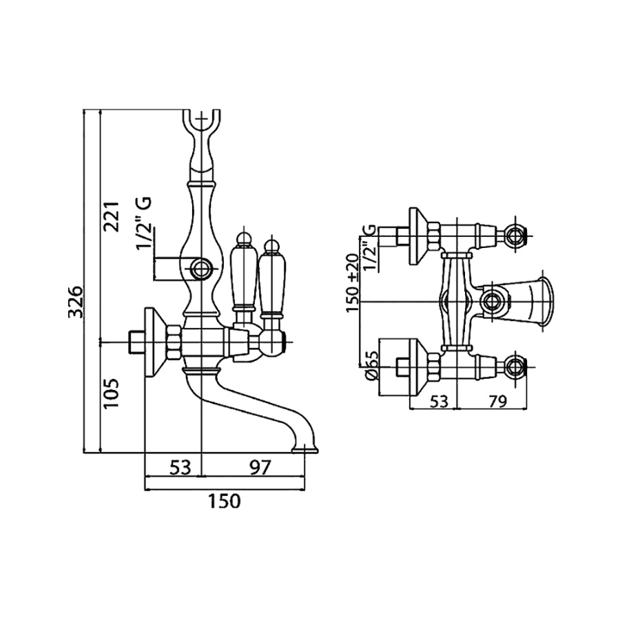 Смеситель для ванны с душем Cezares First VD FIRST-VD-03/24-Bi золото