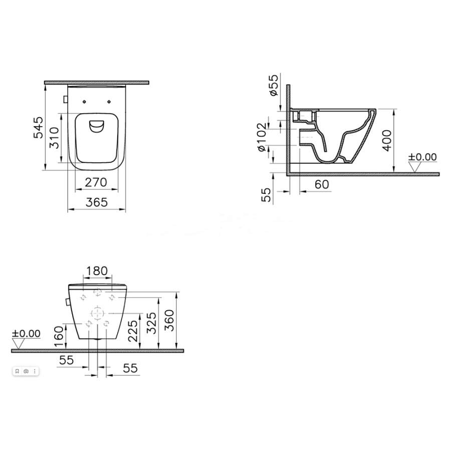 Унитаз подвесной VitrA Integra Square 7082B003-0075 безободковый