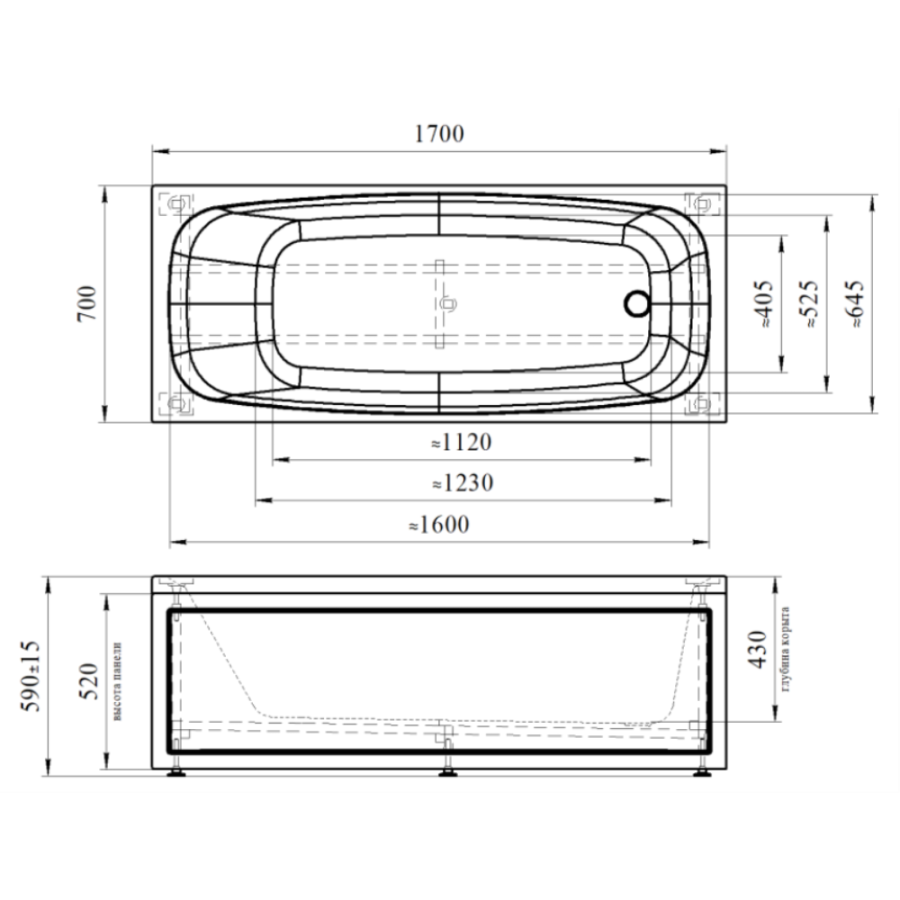 Акриловая ванна AVS Деметра 170х70 белая, без каркаса