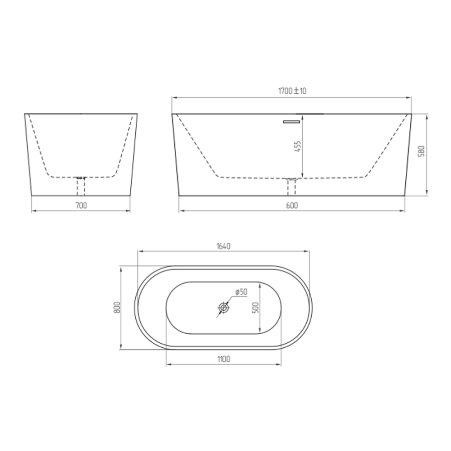 Акриловая ванна AVS Оливия 170x80 белая, с донным клапаном