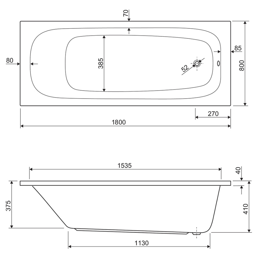 Акриловая ванна Cezares Eco 180х80 белая, без каркаса
