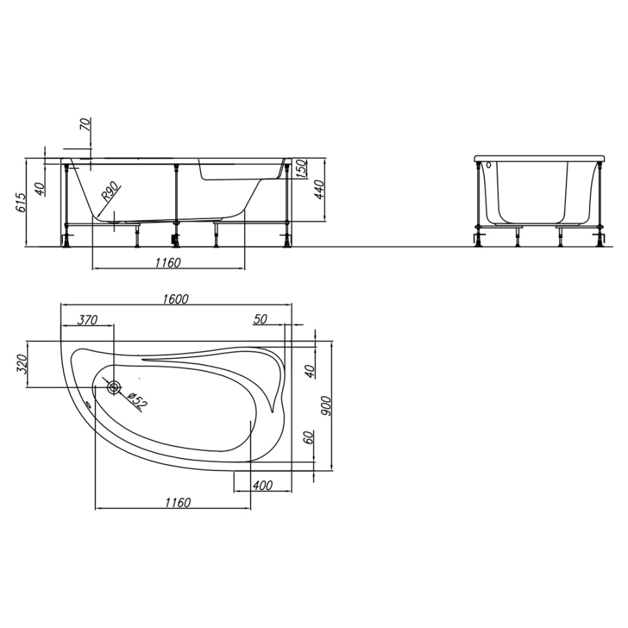 Акриловая ванна Kolpa-San Calando 160х90 L белая, с каркасом