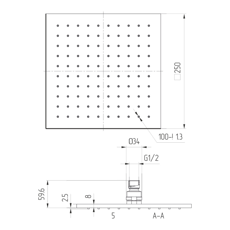 Верхний душ AVS Rainy Air 25x25 хром