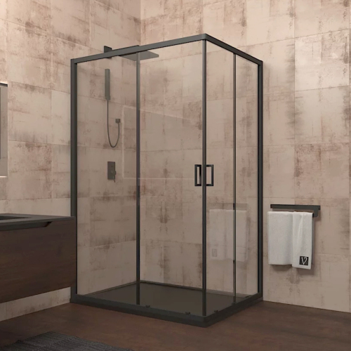 Душевой уголок Veconi Rovigo RV-14 120х90 профиль черный матовый, стекло прозрачное