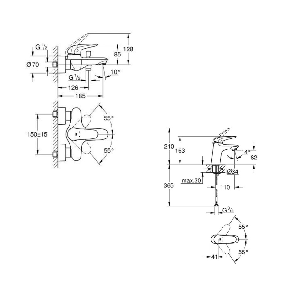 Комплект смесителей GROHE Eurostyle 23715003+23726003 хром