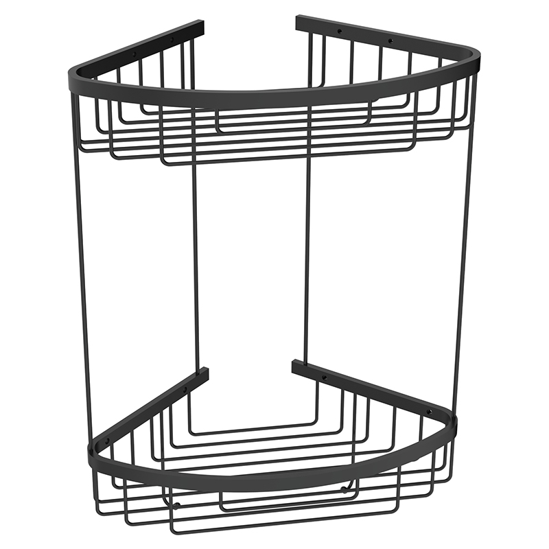 Полка угловая AVS Cesta, 20х20 см, черный матовый, двухъярусная, с крючками