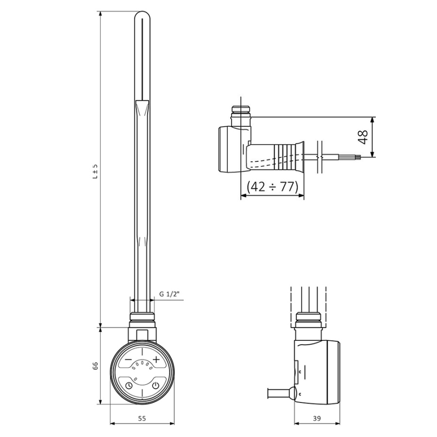 Полотенцесушитель электрический Grota Soffi 53х1000N + ТЭН MOA 300W черный матовый