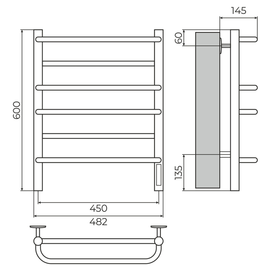 полотенцесушитель; модуль скрытого монтажа; кабель; крепления; инструкция.