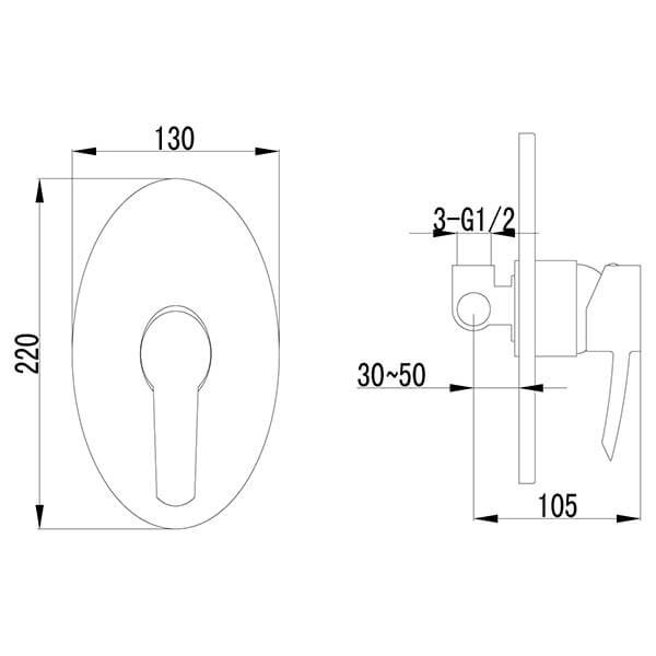 Наружняя часть смесителя;скрытая монтажная часть.