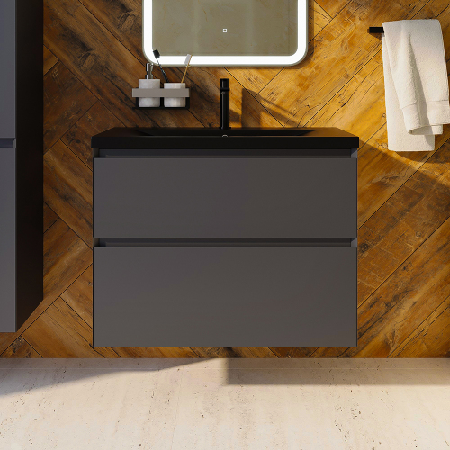 Тумба с раковиной AVS Гармония 80 антрацит матовая (раковина 01 черная матовая)