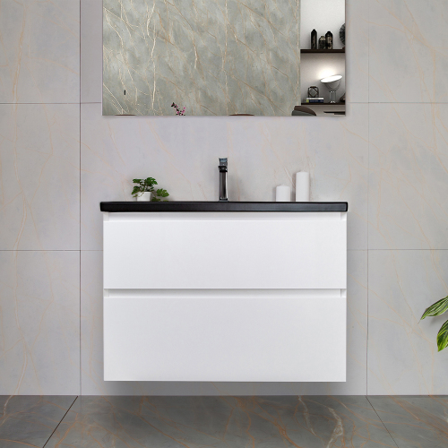 Тумба с раковиной AVS Гармония 80 белая (раковина 01 черная матовая)
