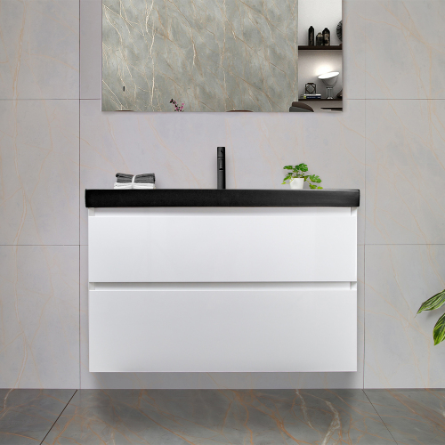 Тумба с раковиной AVS Гармония 80 белая (раковина 02 черная матовая)