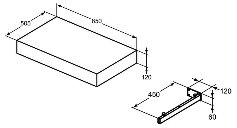 U8407WG+U842867 Столешница 850*500 БЕЛЫЙ + Крепеж для столешницы (2 шт.) Adapto IS