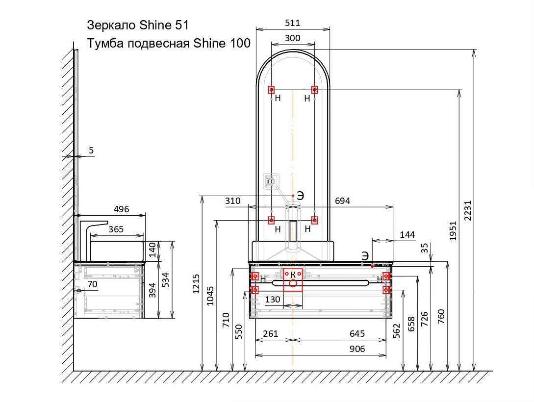 Зеркало Jorno Shine 51 с подсветкой
