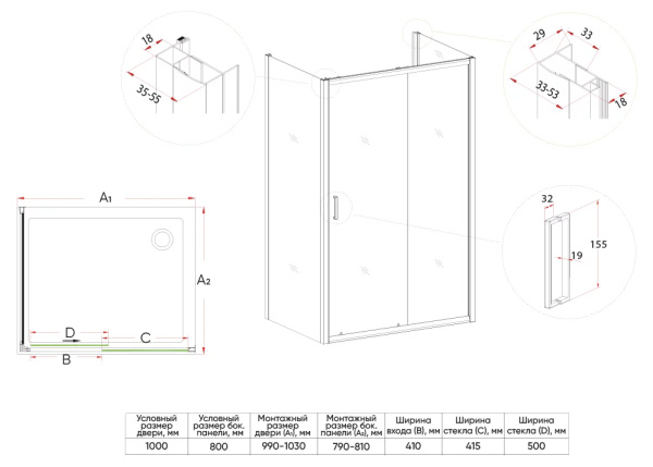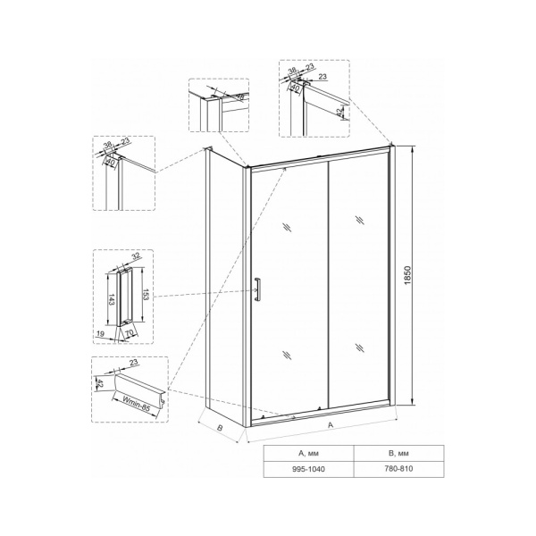 - Раздвижные душевые уголки