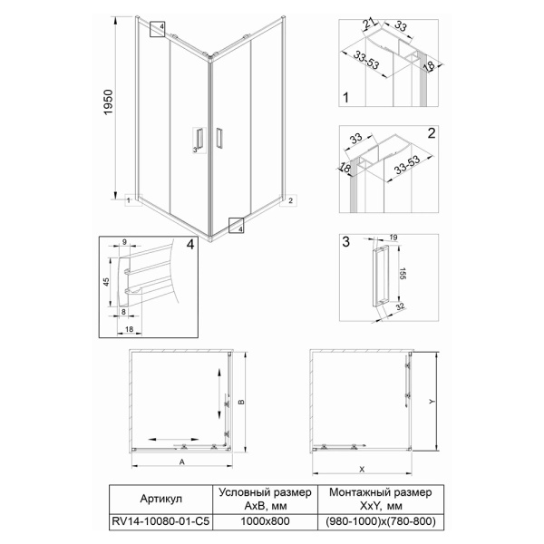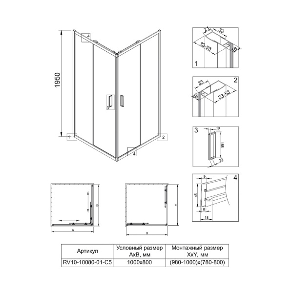 - Прямоугольные и квадратные душевые уголки