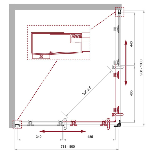 - Поворотные душевые уголки