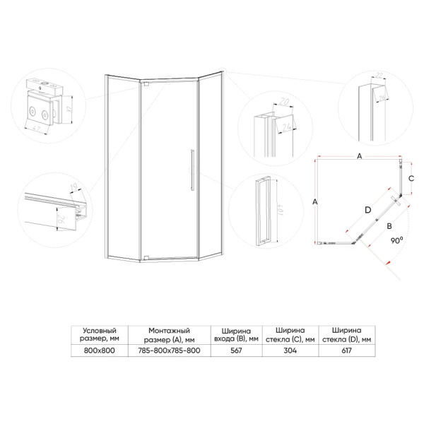 - Распашные душевые уголки