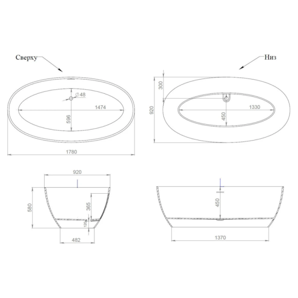 Ванна из искусственного камня Бостон 1800х740 ЭСТЕТ